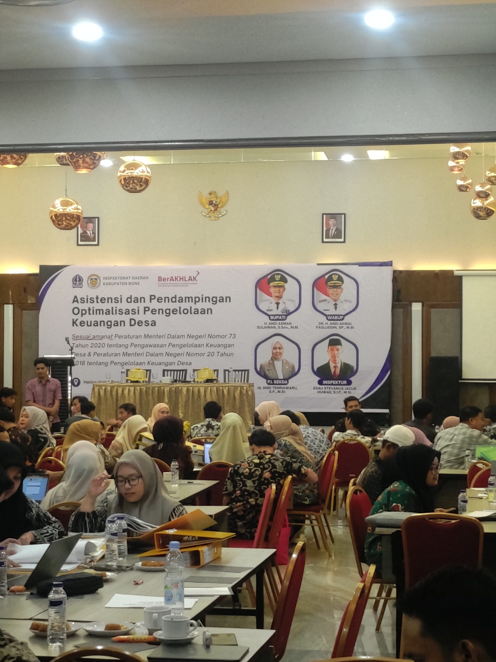 BONE, SAPARAKYAT.COM-Inspektorat Daerah Kabupaten Bone menggelar kegiatan Asistensi dan Pendampingan Optimalisasi Pengelolaan Keuangan Desa yang difokuskan pada pengelolaan anggaran desa Tahun 2025.