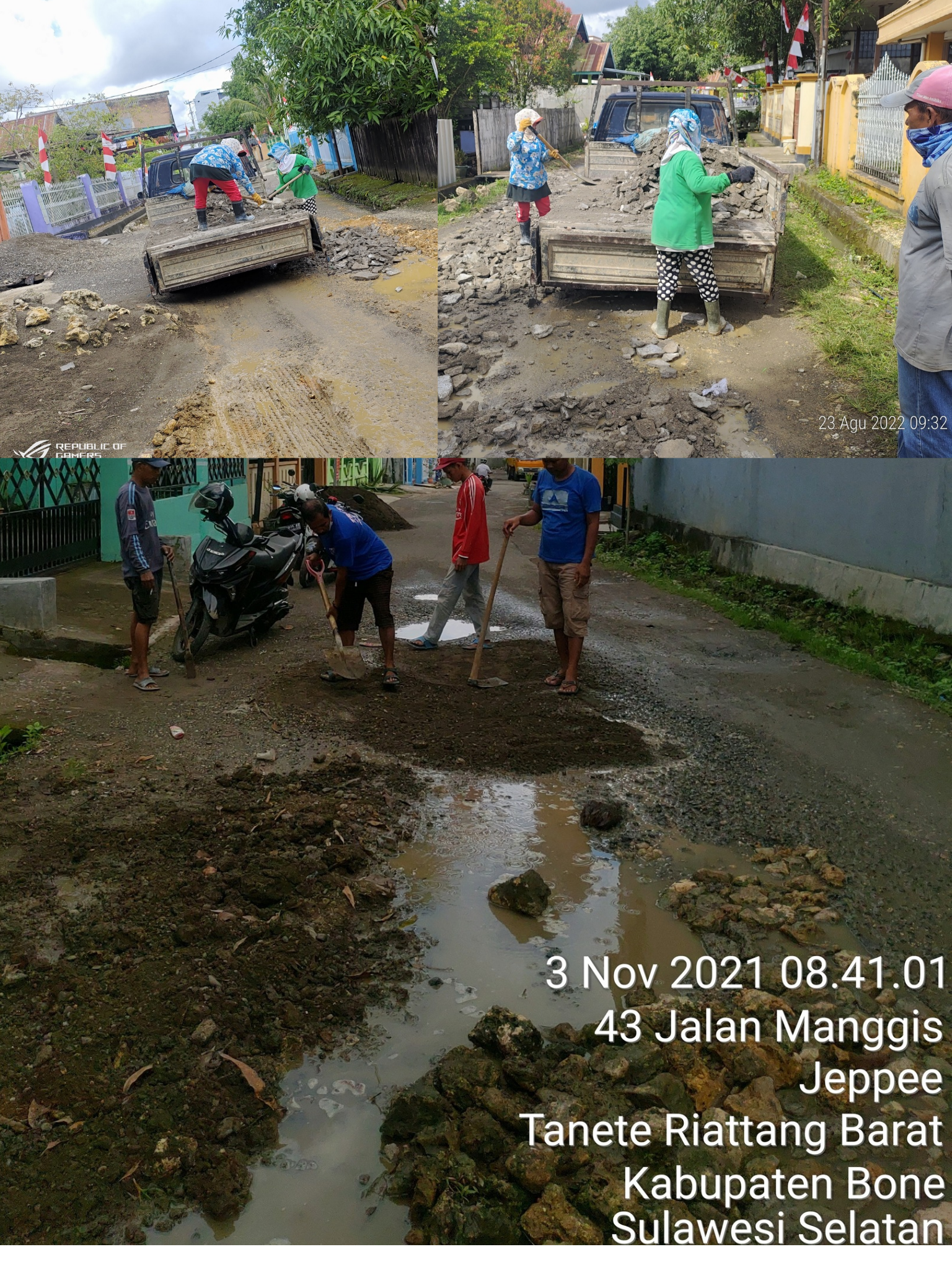 Di sisi lain, Jl Manggis, di kelurahan yang sama, justru menjadi potret ketimpangan perencanaan. Selama bertahun-tahun, jalan ini mengalami kerusakan parah. Saat musim hujan, warga harus berswadaya membeli timbunan agar jalan tetap bisa dilalui.