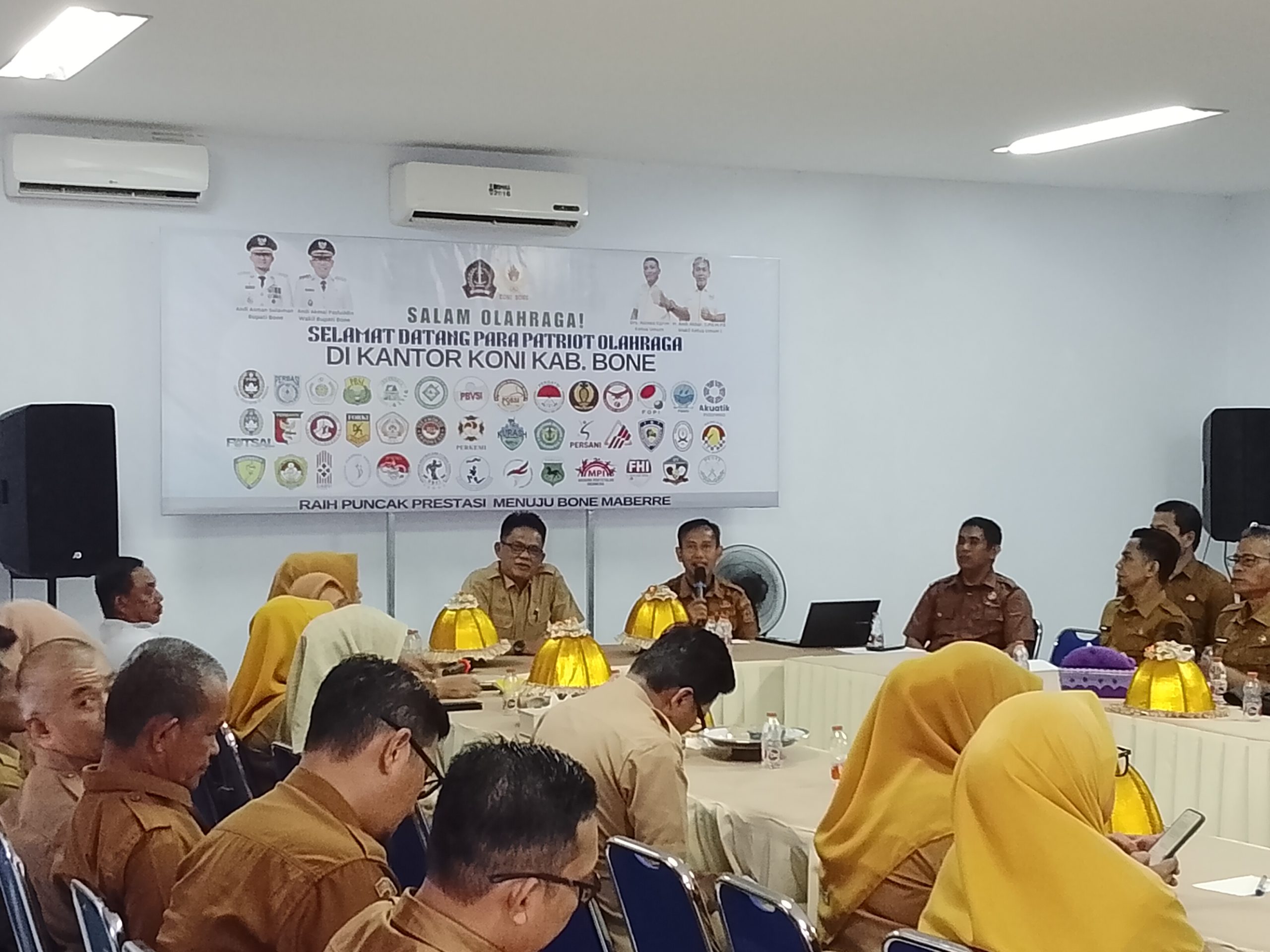 Rapat tersebut dipimpin langsung oleh Kepala Dinas Pemuda dan Olahraga (Kadispora) Kabupaten Bone, Andi Akbar, S.Pd., M.Pd., serta dihadiri para camat dan perwakilan organisasi perangkat daerah (OPD) lingkup Pemerintah Kabupaten Bone.