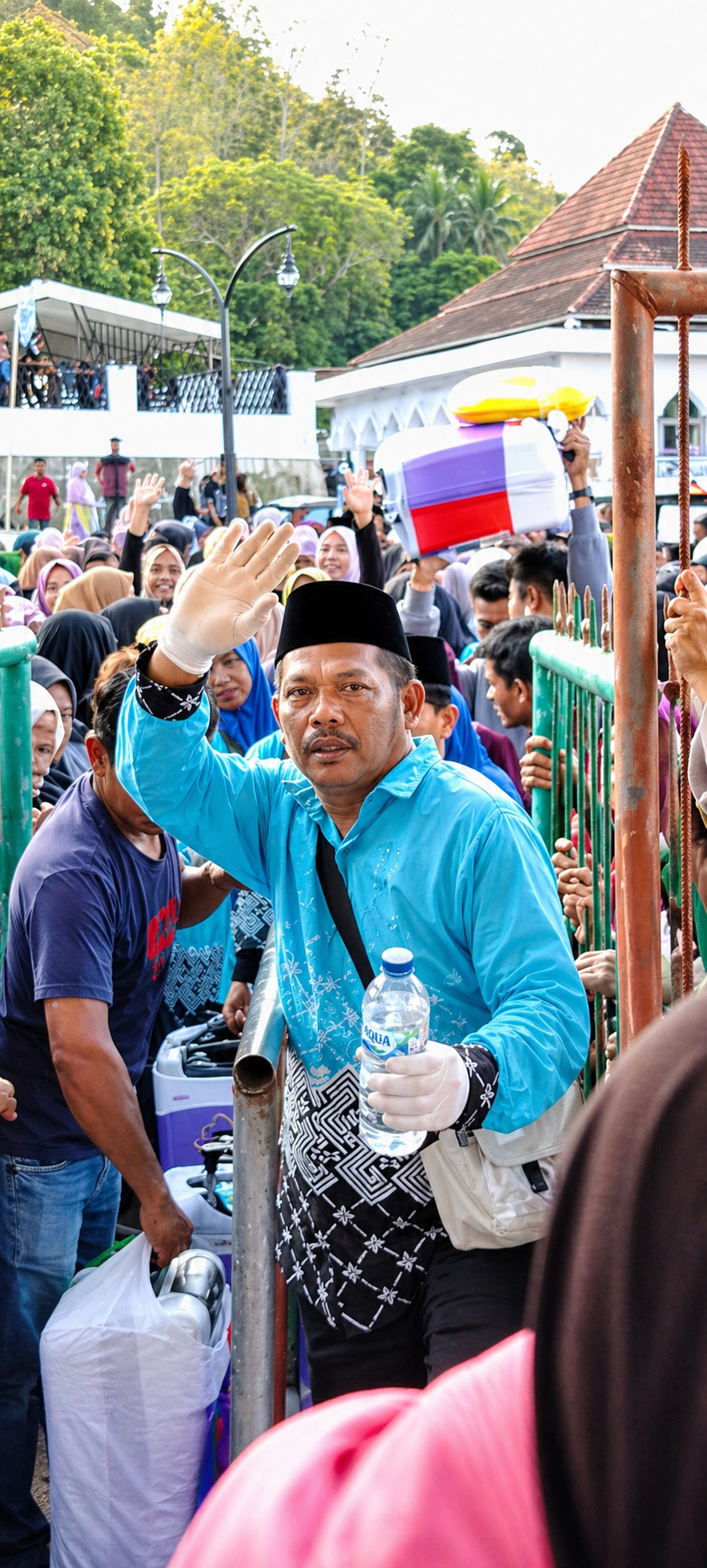 Sejak sore hari, ribuan pengantar telah memadati lokasi. Mereka datang dari berbagai penjuru untuk memberikan dukungan sekaligus melepas sanak saudara menuju perjalanan suci ke Tanah Suci.
